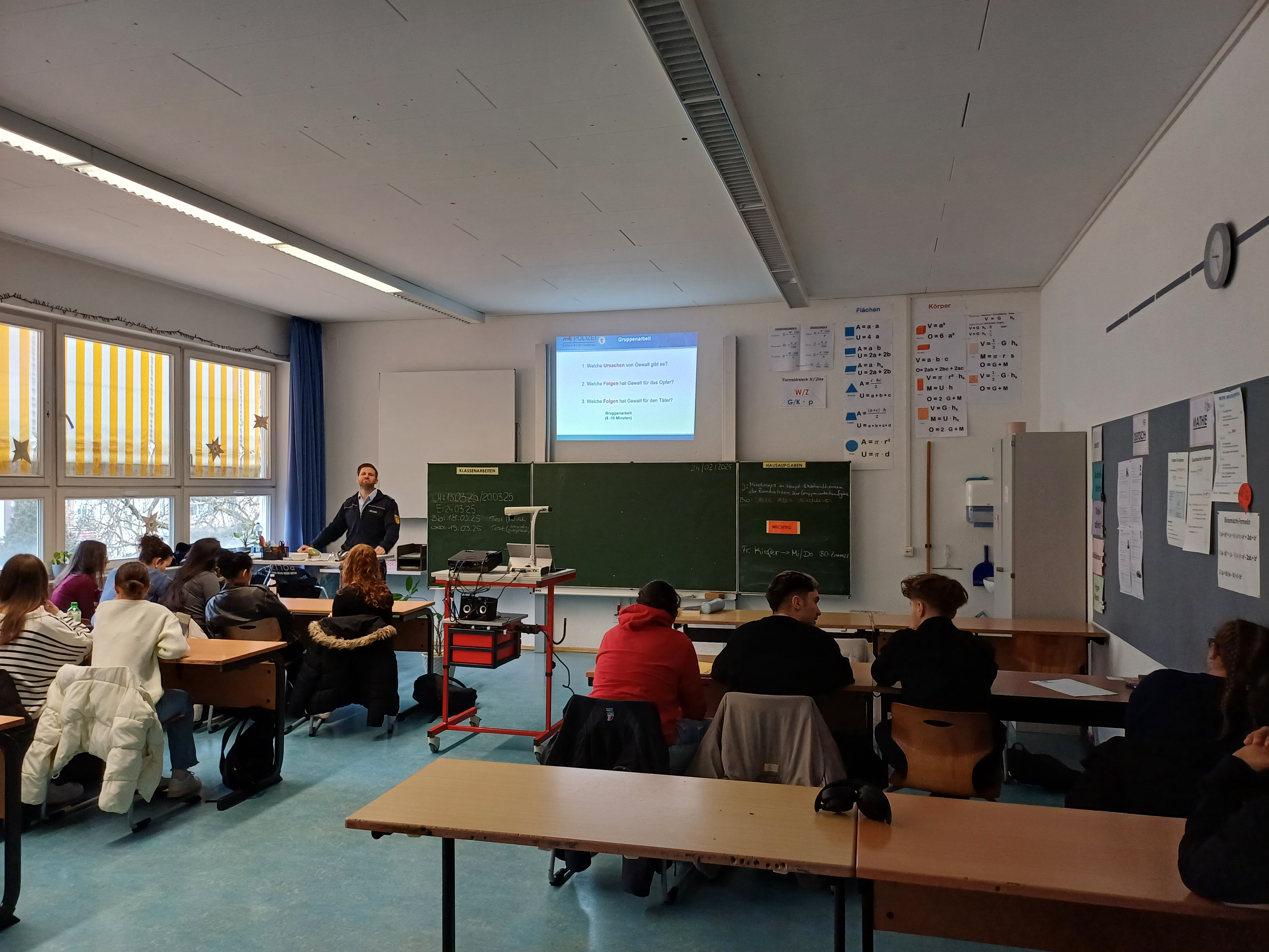 Vor Kurzem besuchte uns die Polizei im Rahmen eines Präventionsprogramms zum Thema Sucht und Drogen. Ziel des Besuchs war es, die 7. Klassen über Gefahren aufzuklären, Bewusstsein zu schaffen und Fragen zu beantworten.